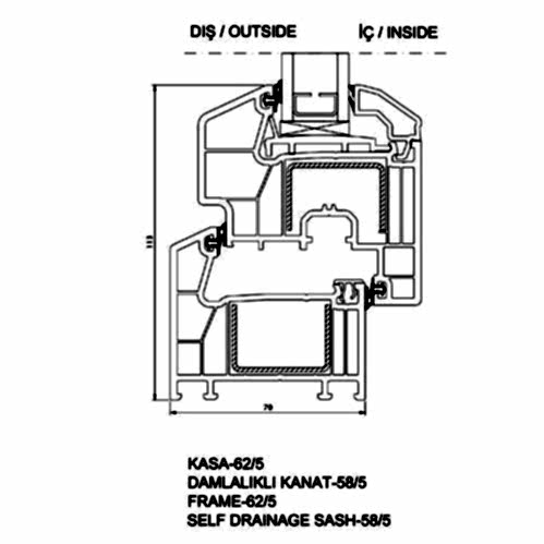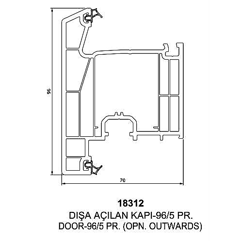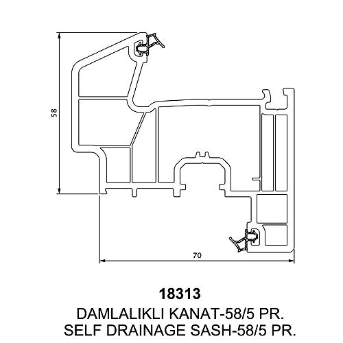 - Düz kanat profiline ilave olarak damlalıklı kanat profili seçeneği de sunulmaktadır. Damlalıklı kanat profilinde damlalık kısmı 70mm ölçüsüne dahil değildir. Bu kısım dahil edildiğinde profil ölçüsü 80mm olmaktadır.