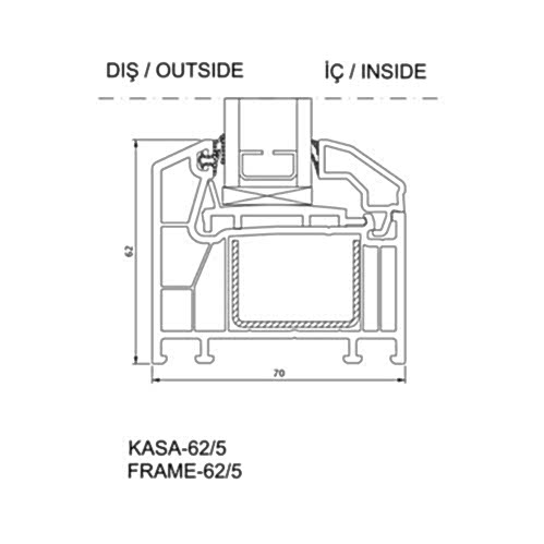 - Kendinden pervazlı kasa profili ile iç yüzeyde, doğrama-duvar birleşimlerinde görsel bütünlük sağlar.